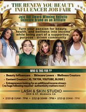 Ready to turn your passion for beauty, skincare, and wellness into opportunity? Join us at the Renew You Beauty Influencer Job Fair at Lash & Skin Studio and step into a community that believes in influence with intention.